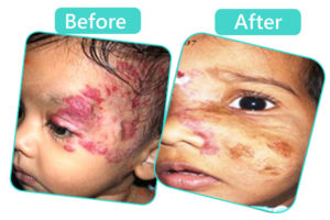 Flat lesions, pigmented marks or the marks ulcerated ones can seek the birthmarks eradication.