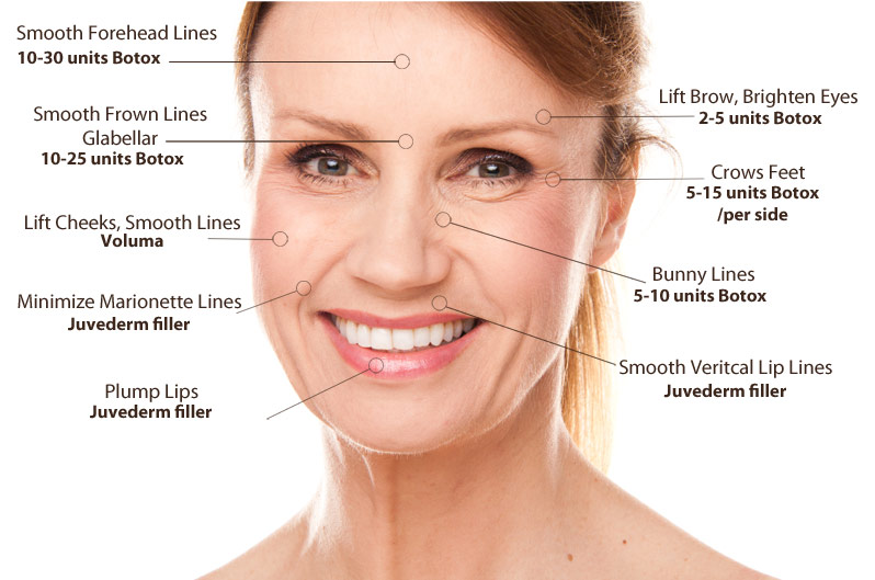BOTOX injections are used to weaken the fine muscles around the eyes and forehead that are responsible for the frown lines and deep wrinkles that occur in these areas. By selectively weakening the proper muscles, the surgeon can eliminate the wrinkles without disturbing normal function andexpressions of face.
